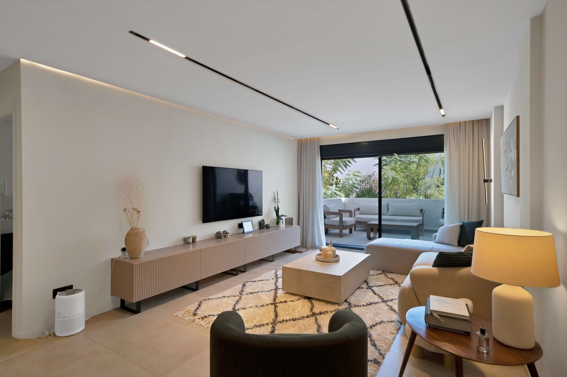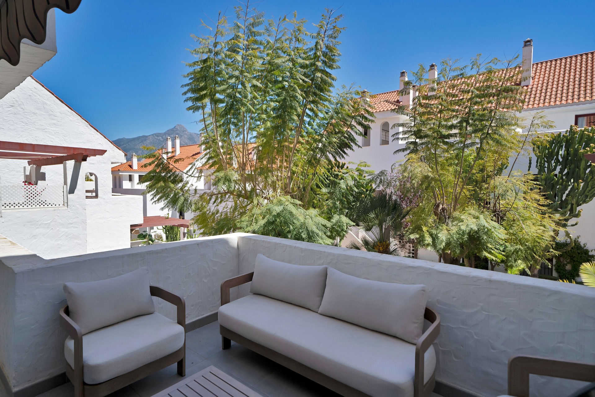 Elegante apartamento en La Maestranza, Nueva Andalucía, que combina el encanto andaluz con un estilo de vida mediterráneo moderno. Luminoso y bien distribuido, el salón se abre a una amplia terraza con vistas a jardines perfectamente cuidados y a la montaña La Concha, ideal para relajarse o disfrutar al aire libre. La propiedad cuenta con suelo radiante en toda la vivienda con control independiente por estancias, así como un sistema de descalcificación de agua para mayor confort. Incluye plaza de garaje privada en parking subterráneo. Además, dispone de LPO, lo que permite la obtención inmediata de la licencia turística (RTA), convirtiéndolo en una excelente oportunidad de inversión.